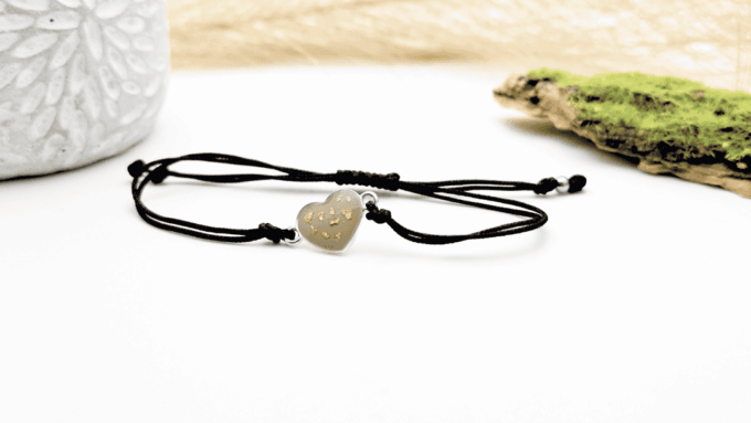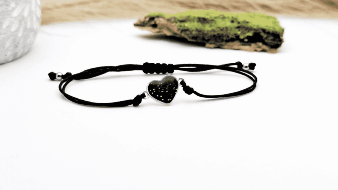Bransoletka serce czarne ze złotym brokatem (srebro 925)