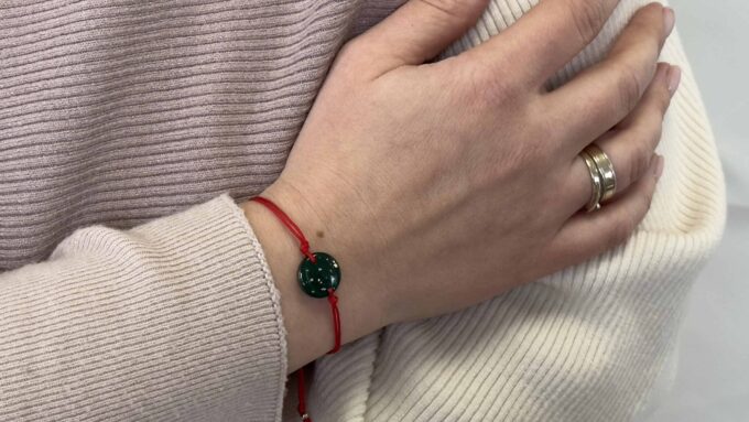 Bransoletka okrągła butelkowa zieleń z płatkami złota