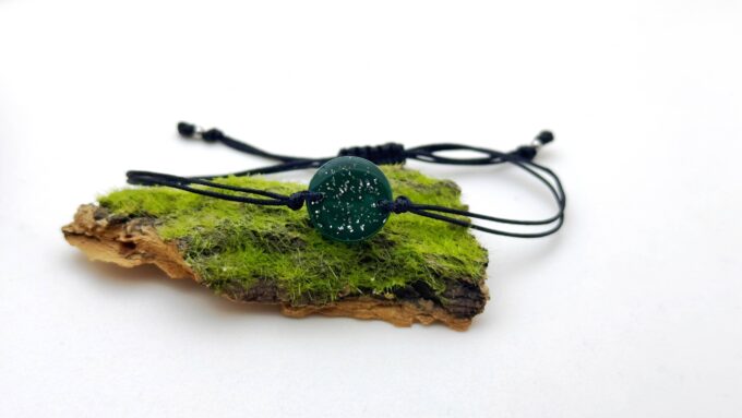 Bransoletka okrągła butelkowa zieleń ze srebrnym brokatem