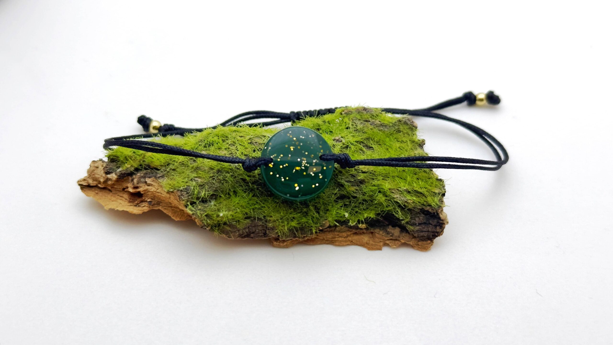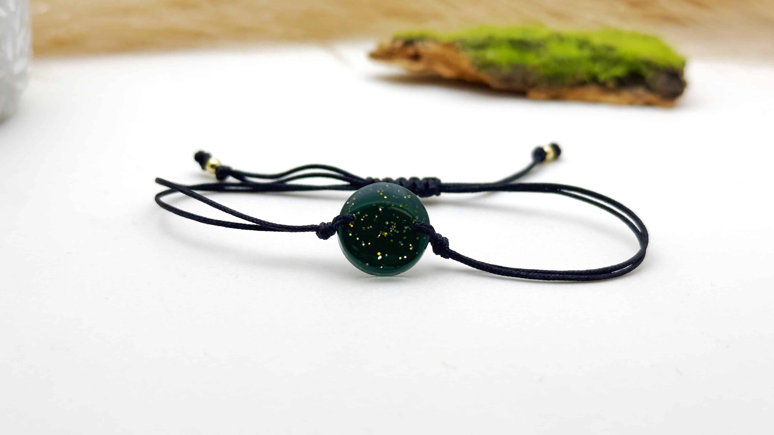 Bransoletka okrągła butelkowa zieleń ze złotym brokatem