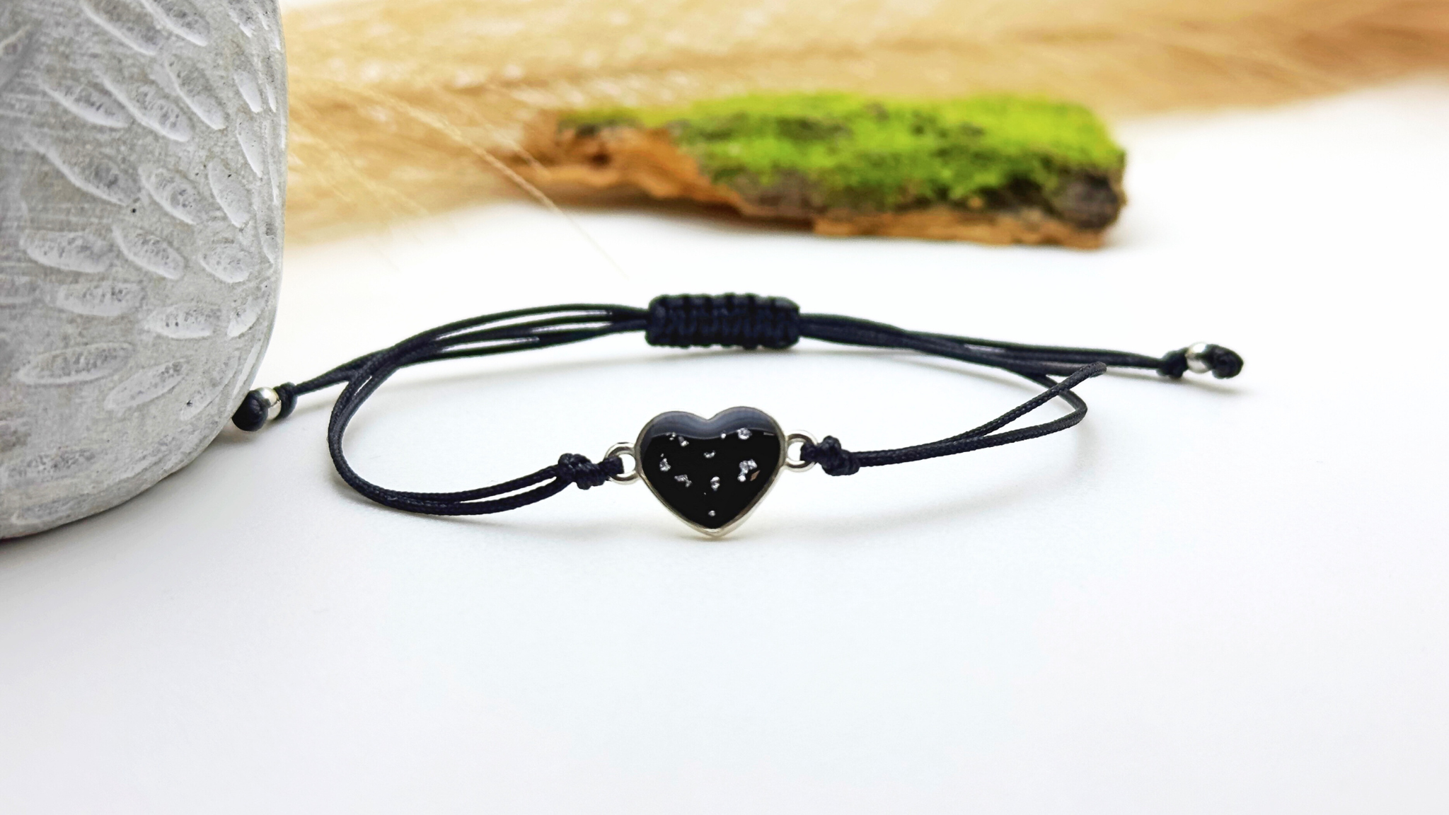 Wymiary bransoletki to 11 x 11 mm, obwód regulowany splotem makramowym lub łańcuszkiem o długości 5 cm. Minimalny obwód bransoletki to 13 cm, maksymalny 18 cm.