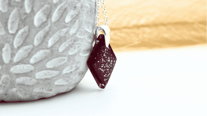 Biżuteria wykonana z metalu oraz żywicy epoksydowej.