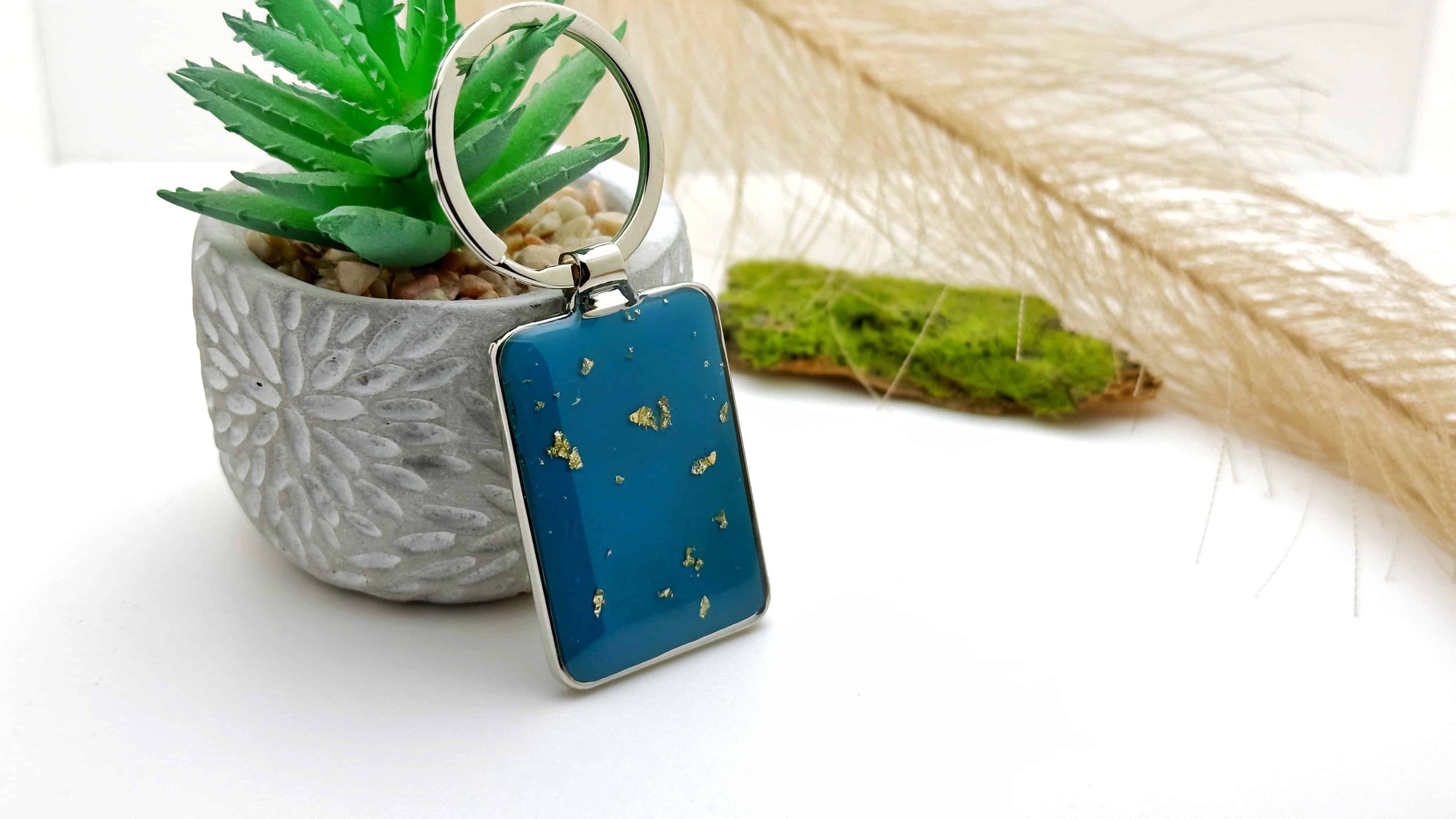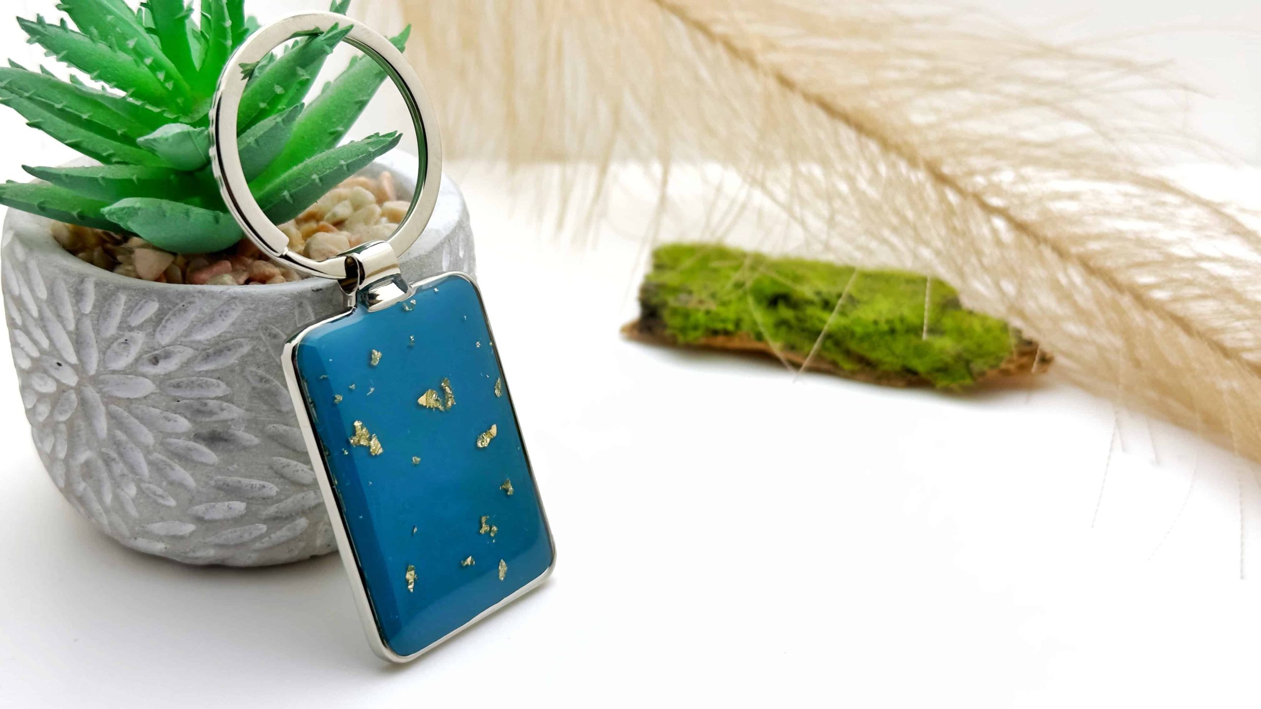 Biżuteria wykonana z metalu oraz żywicy epoksydowej.