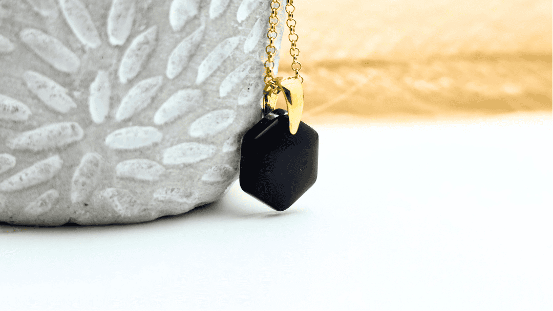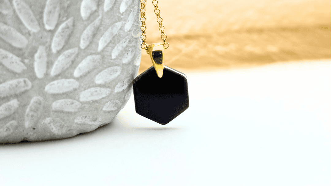 Zawieszka heksagon czarny (pozłacane srebro 925)