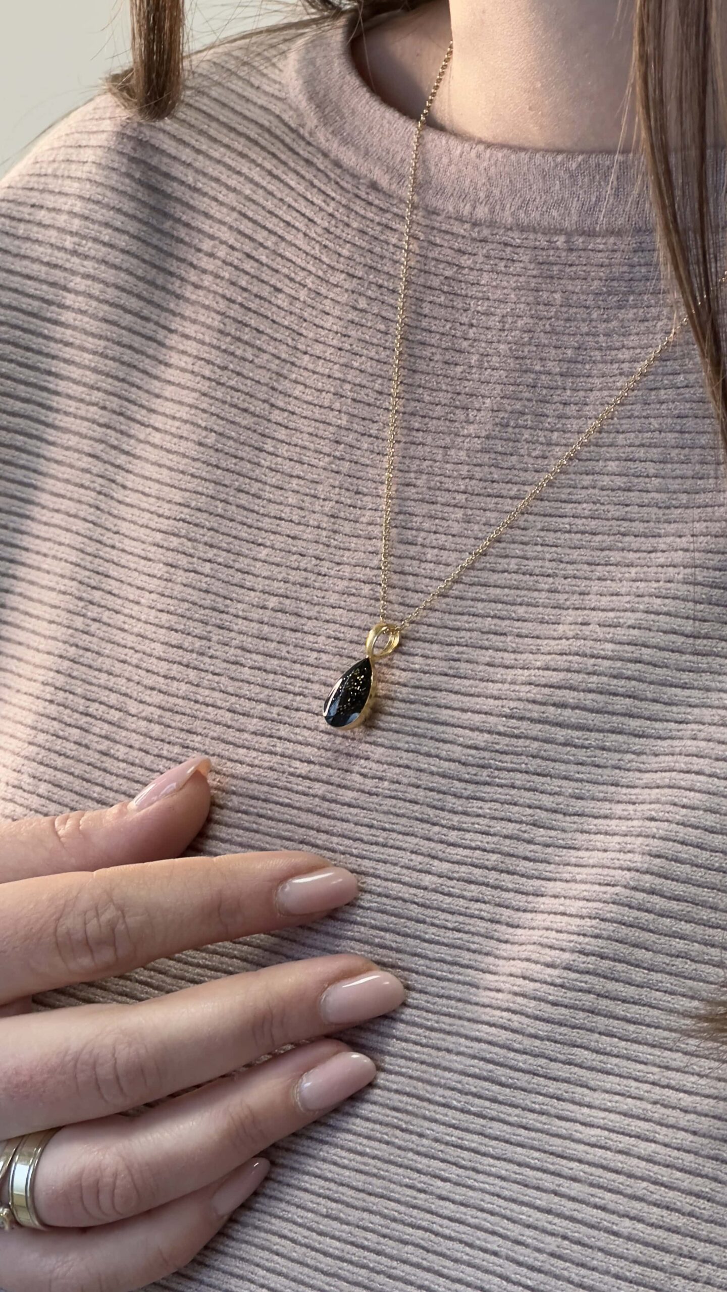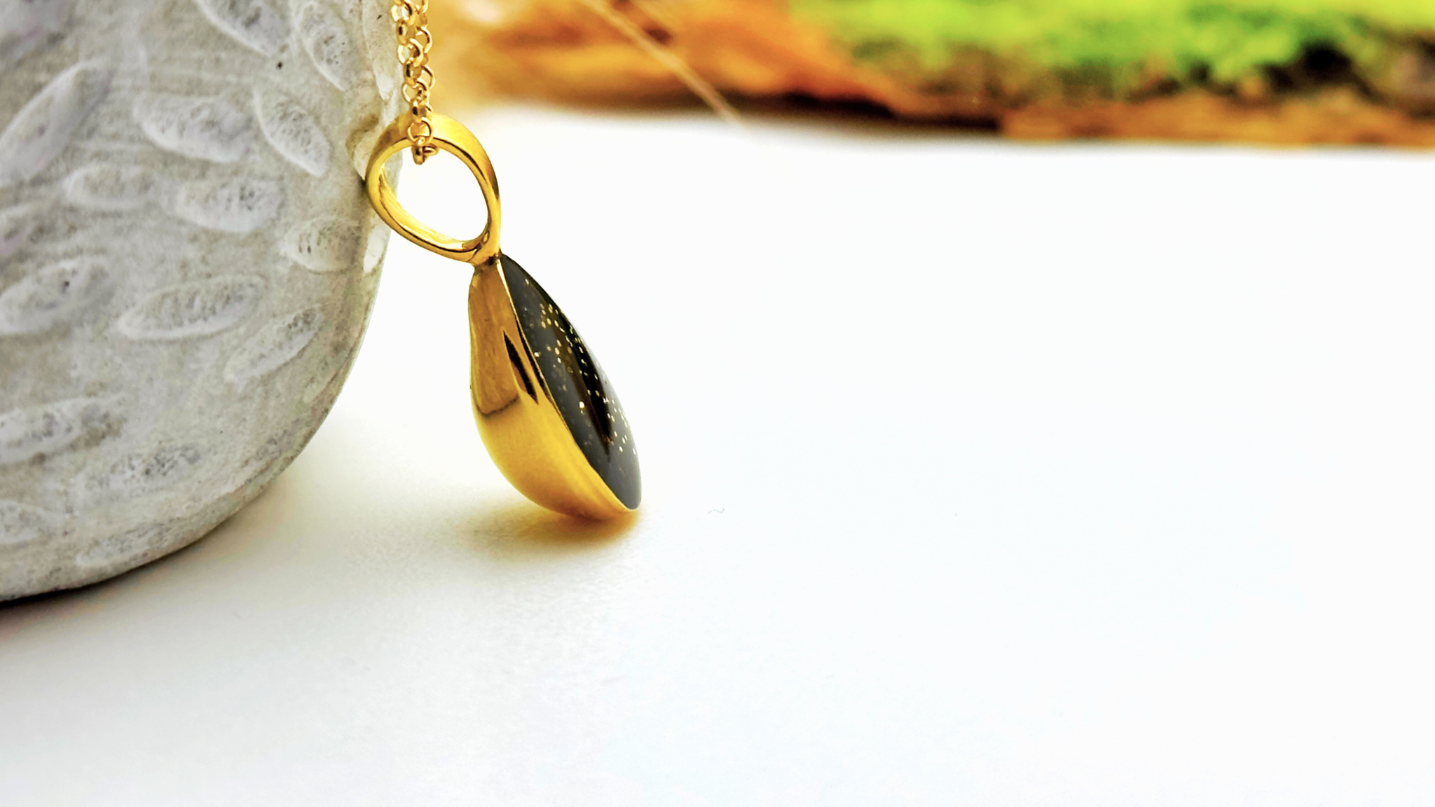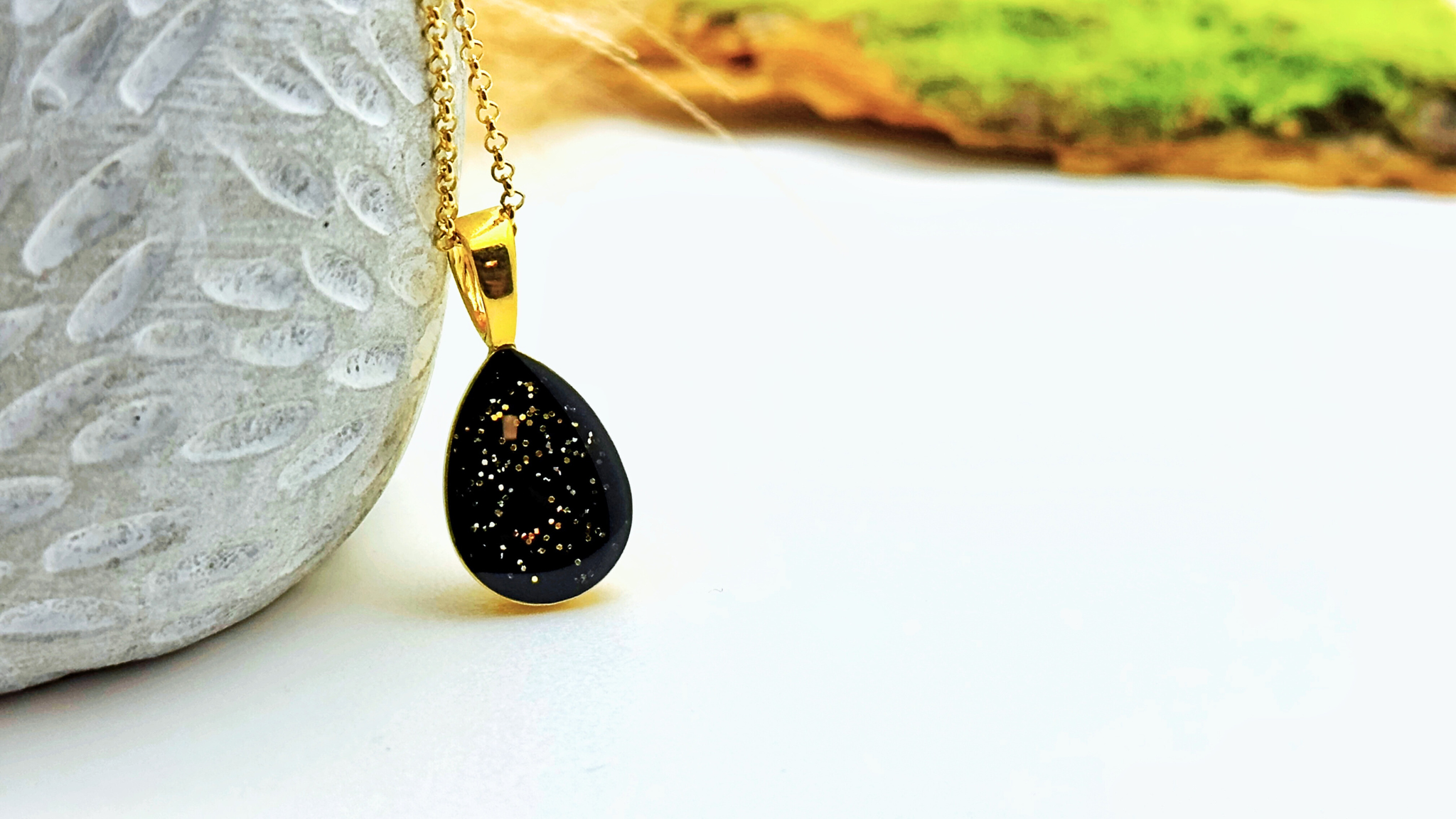 Zawieszka łezka czarna ze złotym brokatem (pozłacane srebro 925)