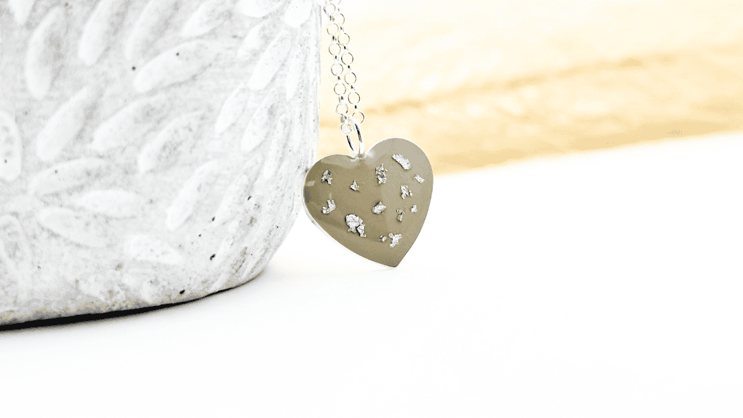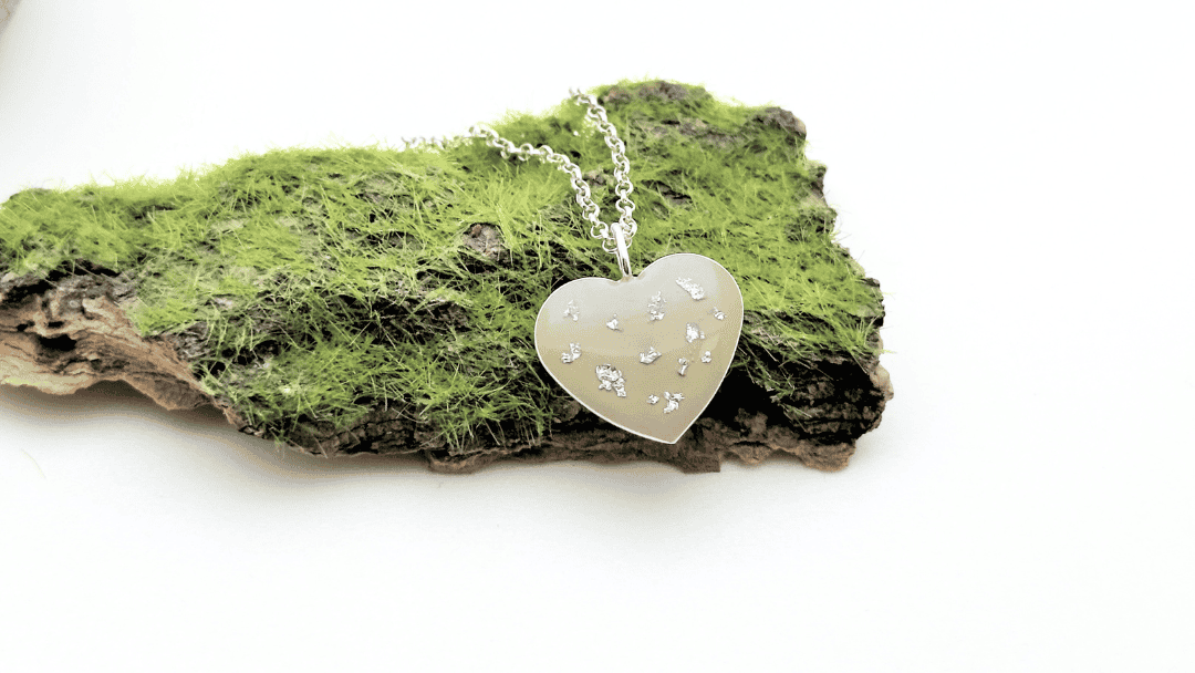 Zawieszka serce beżowe z płatkami srebra (srebro 925)