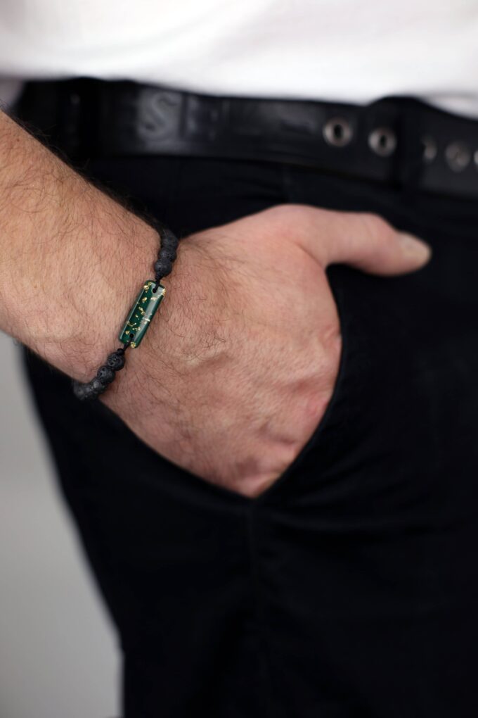 • Bransoletka męska z koralikami z lawy wulkanicznej